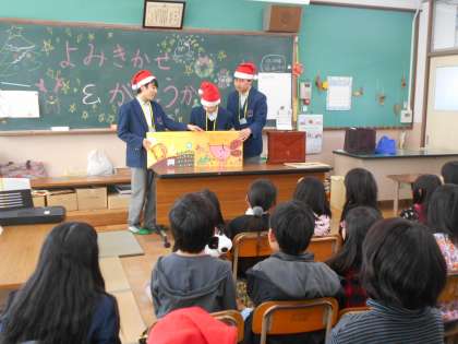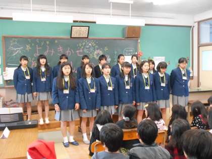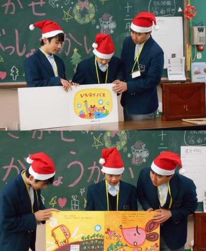 絵本の「いもほりバス」の読み聞かせと合唱部の最初の歌です。