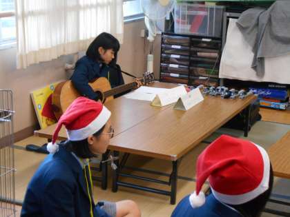 最初の曲はギターの伴奏で歌ってくれました。一回目の歌の後は紙芝居です。