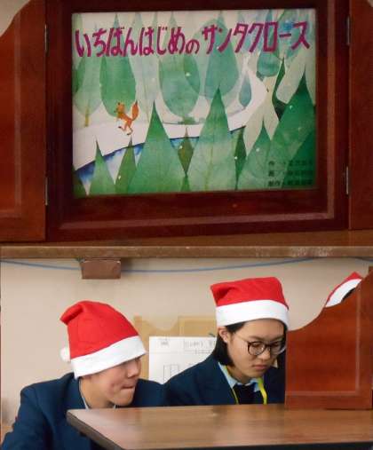 二つのグループが「カエルの王子さま」と「いちばんはじめのサンタクロース」という紙芝居を上演してくれました。