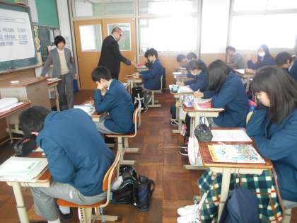 こちらも同じく社会保険労務士の方による授業です。5組は佐藤先生とのペアです。