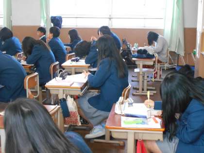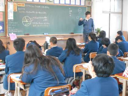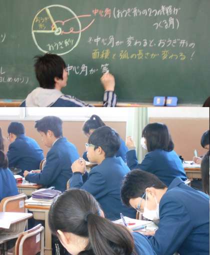 1年4組の数学です。中心角と扇形の関係を学習しています。