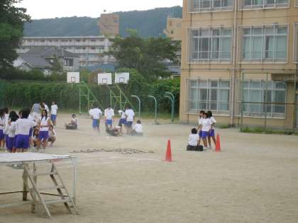 2年学年競技「絆」の練習風景です。「騎馬レース」「ムカデ競争」「タイヤ引き」「大ボール運び」の4つの種目をリレー形式で行います。どの種目も“気持ちを一つにして協力”することがポイントになってきます。本番ではどのクラスが1番になるでしょうか?