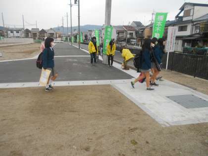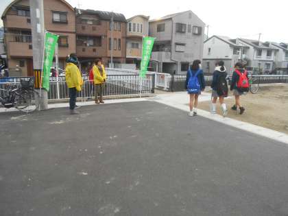 花山稲荷の手前,百々学区の地域委員の方によるあいさつ運動です。