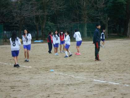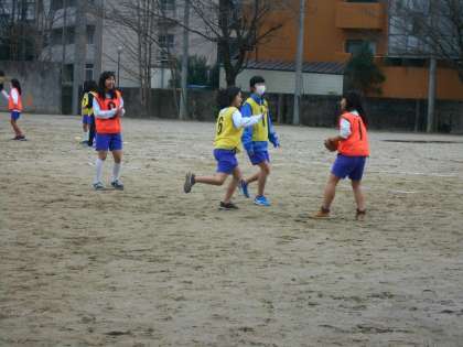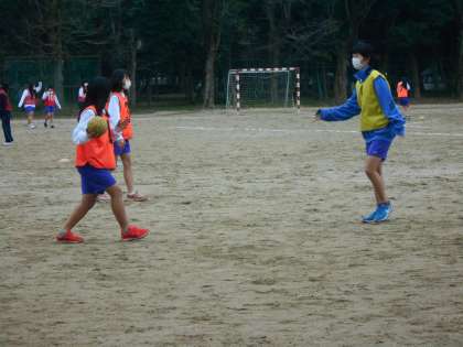 1年生の女子は,グラウンドでハンドボールを行っています。