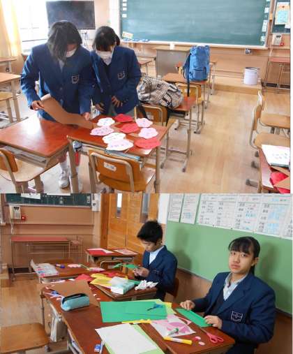 火曜日が休みの事業所は,学校に来て掃除や掲示物の作成に励んでいました。