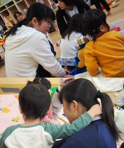 生徒たちも,可愛い小さな子どもたちとかかわって,「いい顔」しています。