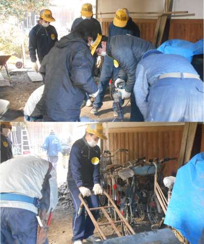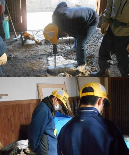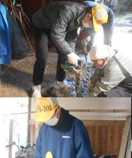 休憩が終わって,作業再開です。昨日から石造りの通路をドリルで砕いて取り除いています。しっかり支えていても,結構な振動のようです。
