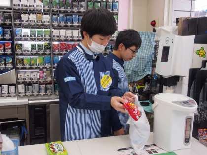 毎年お世話になっている,ローソン西野店で2名の生徒が販売の体験です。