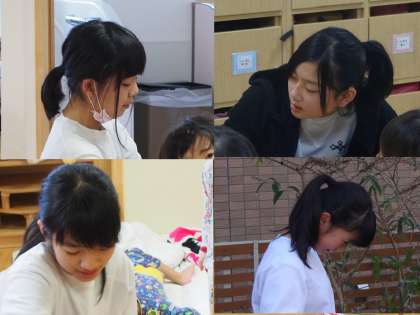 4人ともしっかり子どもたちに接していました。園の先生からも,一日目からしっかり活動してくれていると褒めて頂きました。子どもたちに向ける笑顔がいいですね。