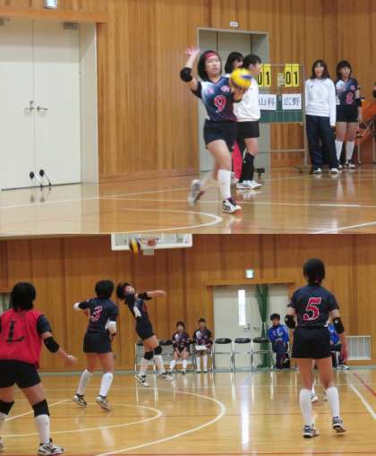 女子バレー部の府大会が2月5日に行われました。山科中は宇治中学の会場で試合に臨みました。