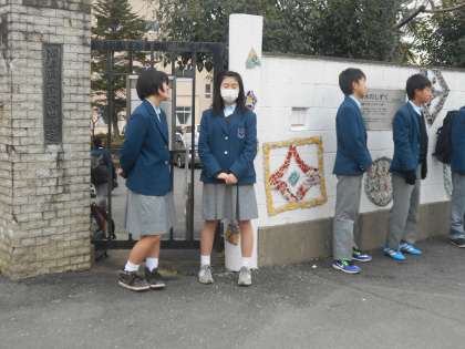 生活委員会のあいさつ運動です。