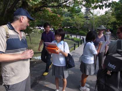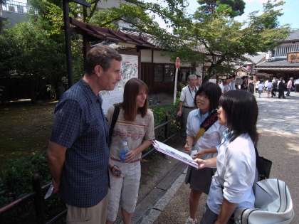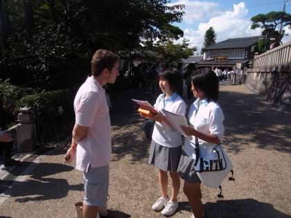9月16日(木)「総合的な学習の時間」に2年生が清水寺に行き、観光に来ておられる外国人の方に英語でインタビューを行いました。少し緊張はしましたが、自分たちの英語が通じることに自信を持つことができました。このインタビューの様子は、9月30日の学習発表会で報告をします。