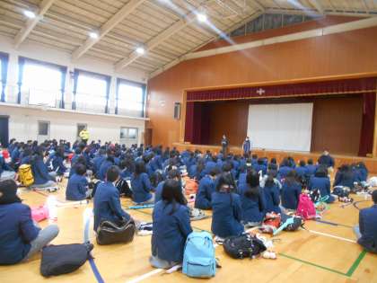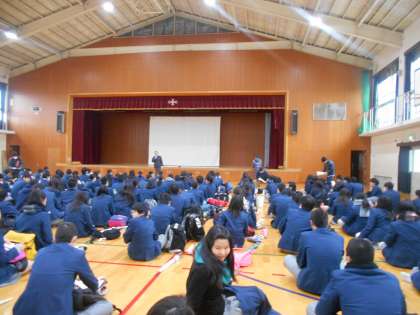 3年生は明日の受験に備えて体育館で集会です。
