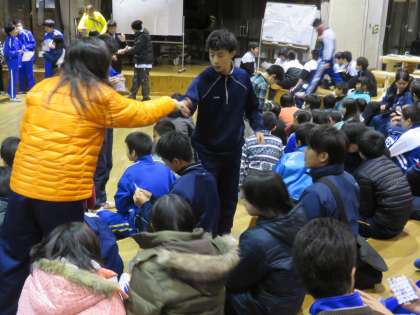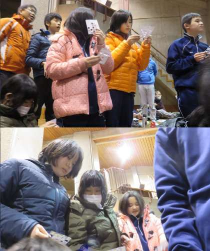 個人のゲームは「ビンゴゲーム」です。リーチになるとみんな立ちます。さて山中では誰が一番にビンゴになるでしょう。