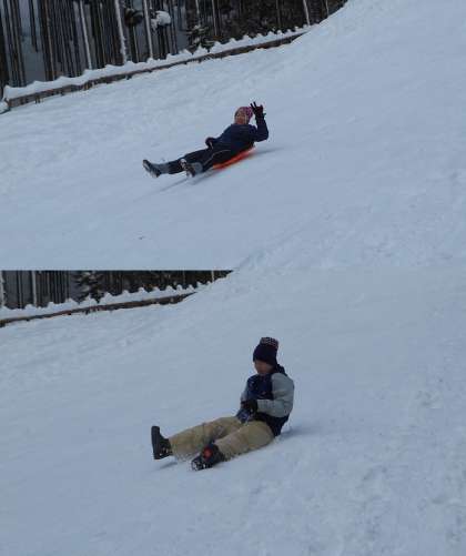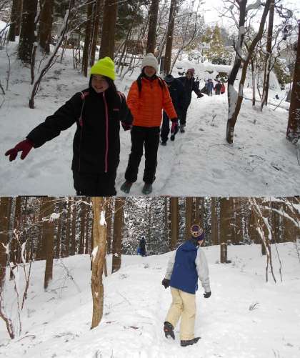 山奥に行ったグループは,更に雪深いところでソリ遊びです。こちらはロングコースです。