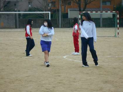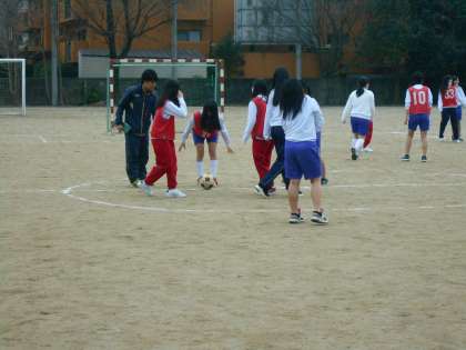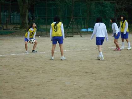 女子もこの時期はグラウンドでサッカーです。毎年体育の時間に取り組んでいるとは言え,普段はグラウンドでサッカーなどして遊ばないので,なかなか難しそうです。