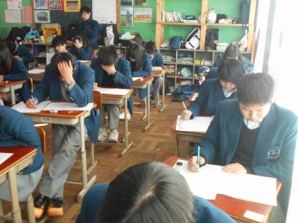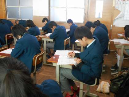 2年は1時間目が数学のテストです。1組のようすです。