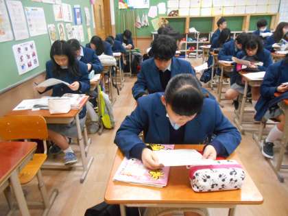 2年3組のテスト勉強の様子です。1時間目に備えて,社会科の勉強をする生徒が多いですね。