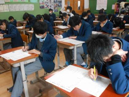 2年2組のテストのようすです。