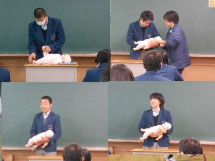 6組では生まれたての赤ちゃんと同じ人形を使っての学習です。