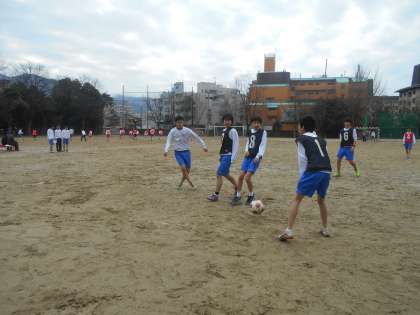 男子はグラウンドでサッカーです。時々小雨が降りましたが,何とか試合を進められました。