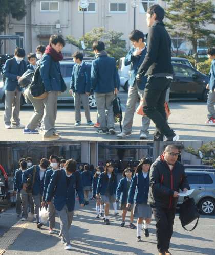 3年生は今日は卒業前校外学習で,大阪の難波グランド花月で観賞です。楽しい思い出になればいいですね。