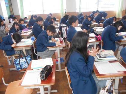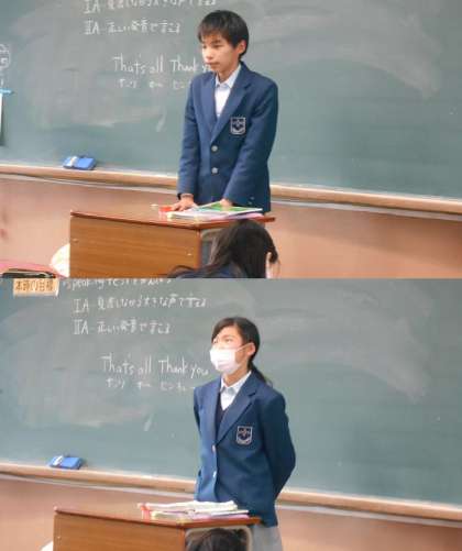 原稿を見ずに,顔を上げて大きな声で話せるかが評価のポイントのようです。順番を待つ間は,他の人のスピーチに評価をつけます。