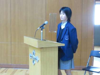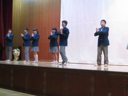評議委員会代表の仲島さんの司会で出し物が始まりました。先ずは生徒会本部による