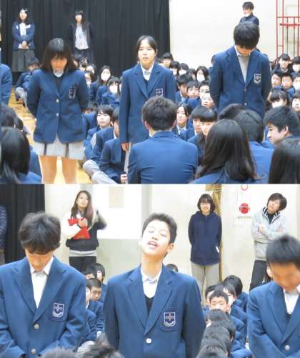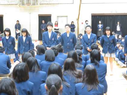 2年生は,先ず各部活動のキャプテンから先輩への感謝の言葉。そして評議委員から3年生みんなに贈る言葉です。