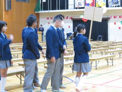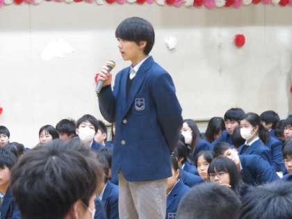 閉会式では,生徒会長の増井君から,先輩への感謝と母校や地域を愛して下さいという言葉や後は任せて下さいという力強い決意がありました。