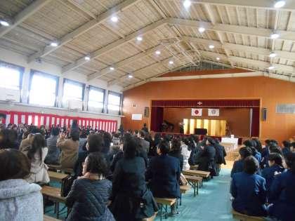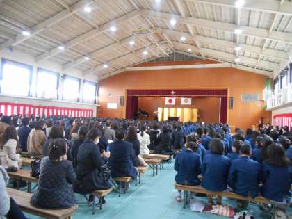 202名の卒業生が入場して,教頭先生の開会の辞です。