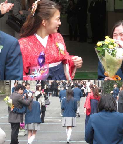 最後は8組です。教室で保護者の方も一緒にお別れをしていたので、少し遅くなりました。泣いて泣いて、最後はとっても明るい担任の先生と笑って卒業です。