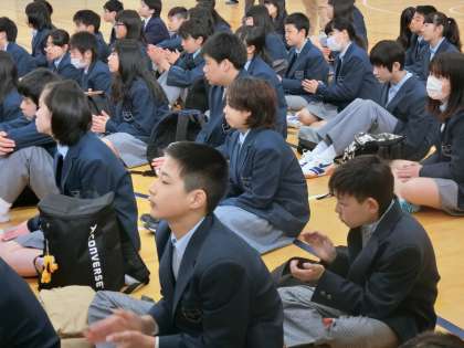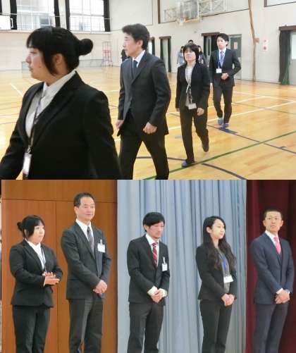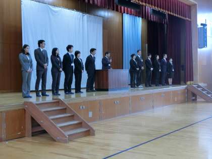 今日は壇上に11名の新しい先生方をお迎えし、校長よりお一人お一人の紹介がありました。