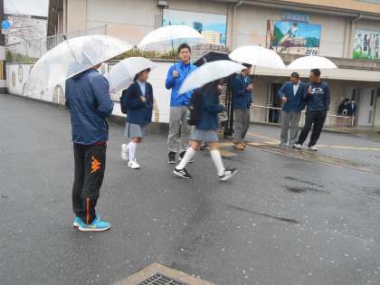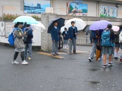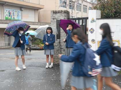 朝から雨と強風で、傘を壊してしまう生徒もいました。