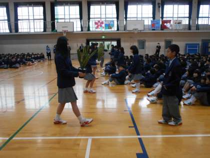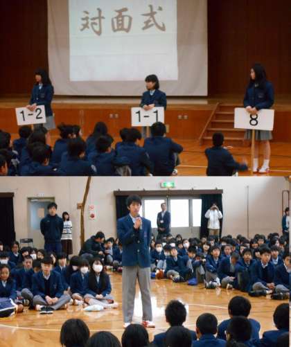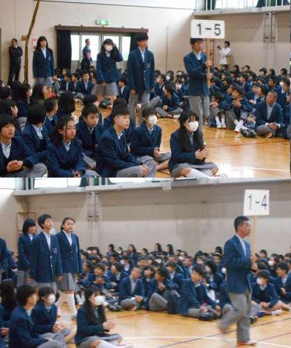 全校が初めて顔を合わせる「対面式」が行われました。生徒会のあいさつの後、学校長からは出会いを大切にして欲しいという話がありました。また、この後の生徒会の説明や部活紹介をしっかり聞いて欲しいということや、上級生には出演する人も応援する人も、自分たちの後輩への思いを伝えて欲しい、頑張って発表して下さいと話がありました。