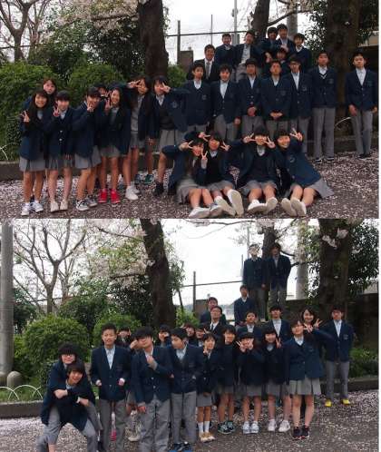 4組、5組と桜の木の下は、1くみと5組の写真です
