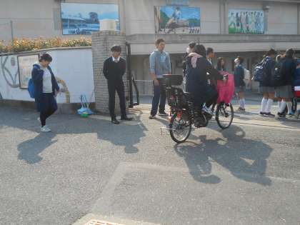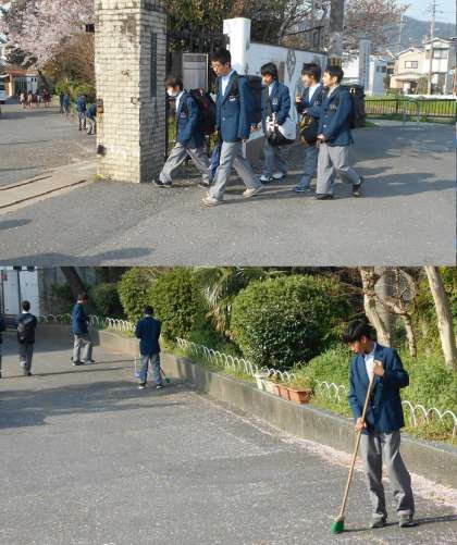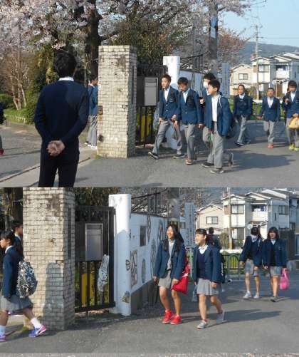 今日も元気に登校する姿が見えます。桜の花も今年は長く楽しめます。