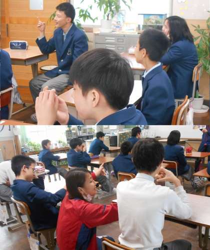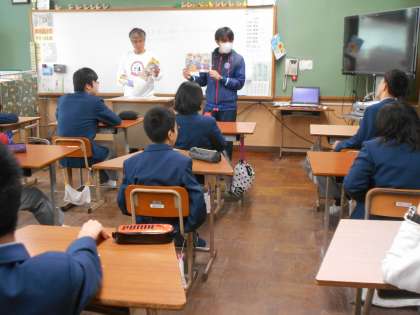 相手の立場にたって考える,行動するをテーマに,イラストで示された場面を見て皆で考えています