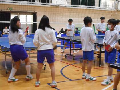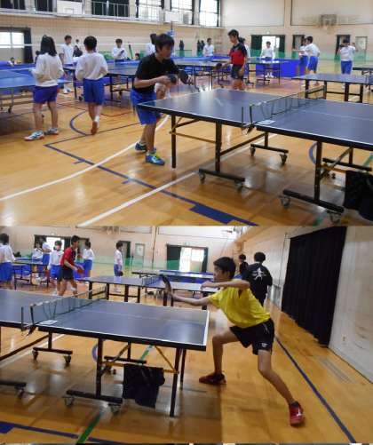 卓球部の活動体験は男女一緒です。