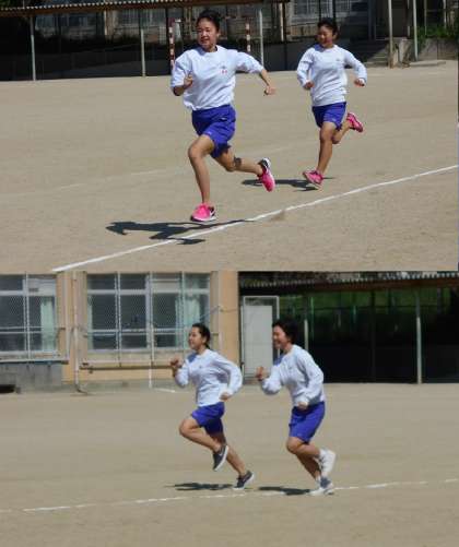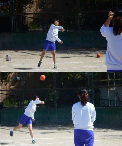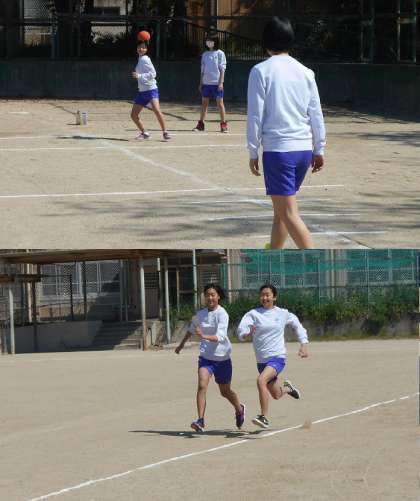 女子はグラウンドで、ハンドボール投げと50メートル走の記録です。