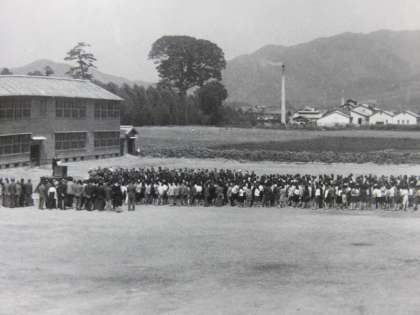 1時間目に体育館で開校記念と憲法学習を行いました。人権教育主任の福島先生からお話があり、学校長からは写真の資料などを使って、山科中と山科区の歴史、憲法の精神、人権の尊重。学校でのいじめ追放などについて話がありました。