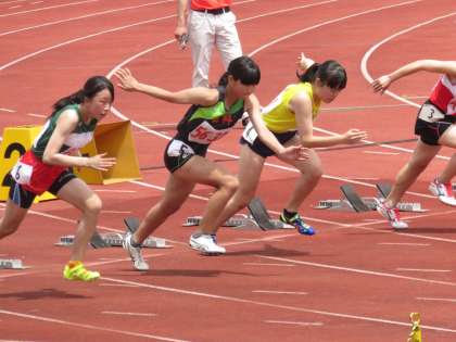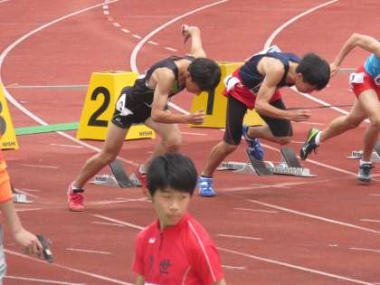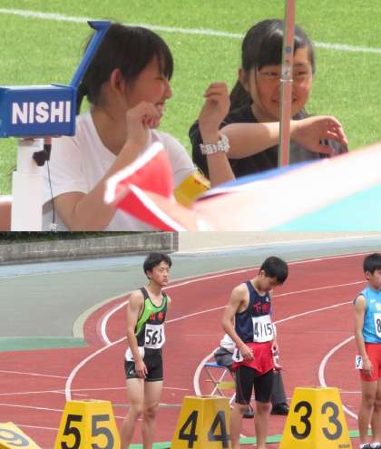 女子と男子の100M予選の様子です。自分の協議が終わった生徒は競技会の補助員を務めています。