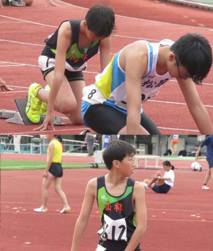 男子の200M予選。自分の競技が終わって応援する姿も見られます。