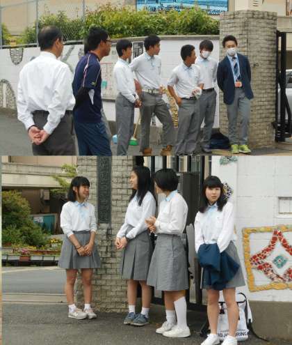 火曜日は生徒会本部です。人数は少なくとも、あいさつの声は一番大きいです。