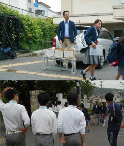 校門付近では、今日まで学級写真の申し込みも行いました。