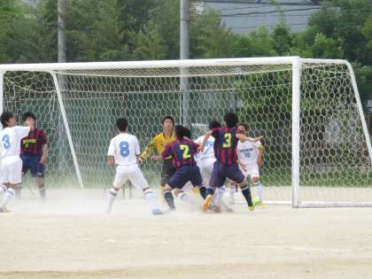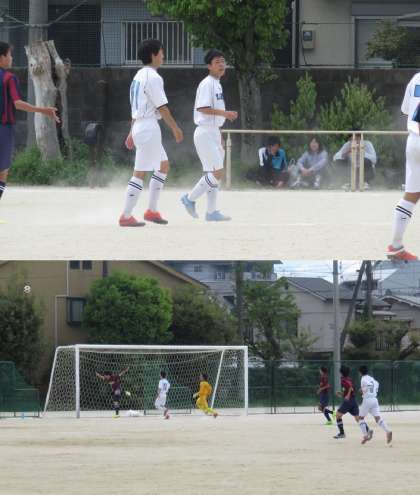 サッカー部は3回戦です。洛南中学会場で、優勝候補の修学院中学と対戦しました。