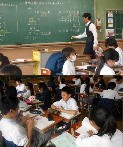 1年生の数学では、正負の数の考え方について、グループで話し合って答えに迫っています。