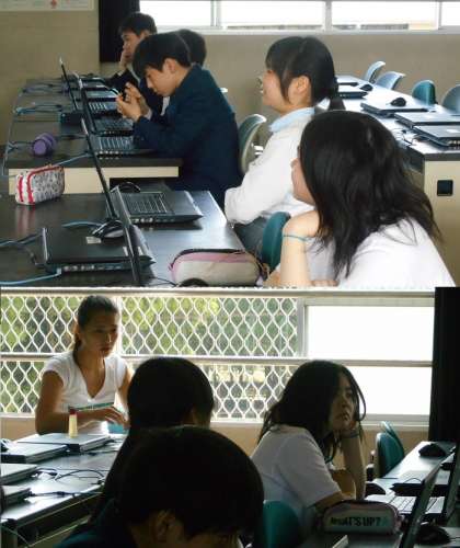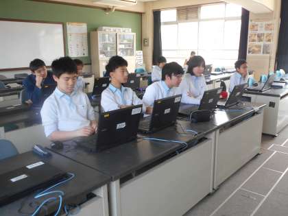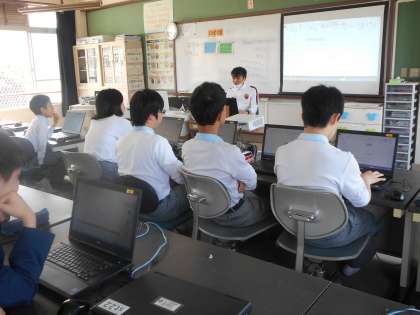 8組はコンピューター室で総合的な時間の学習に取り組んでいます。