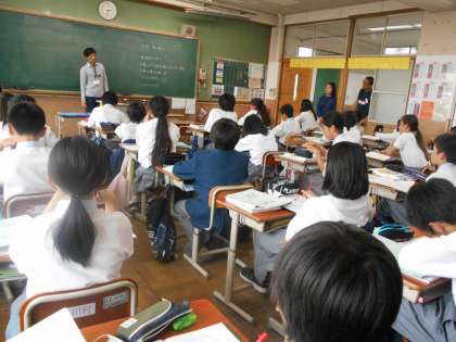 金曜日の6時間目、小学校6年の時の先生方が見に来られました。今日は山階南小学校です。