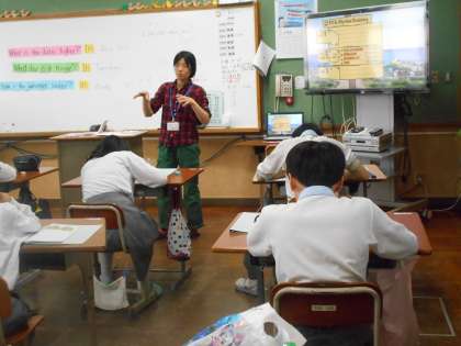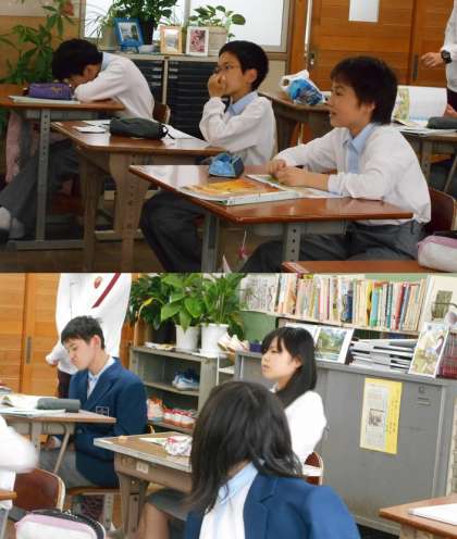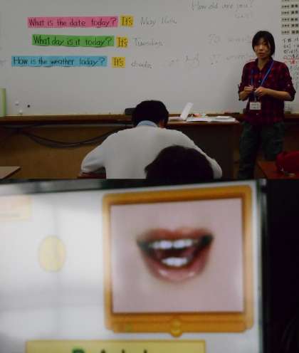 8組の英語は口の形の動画を見ながら、スピーキングをしています。